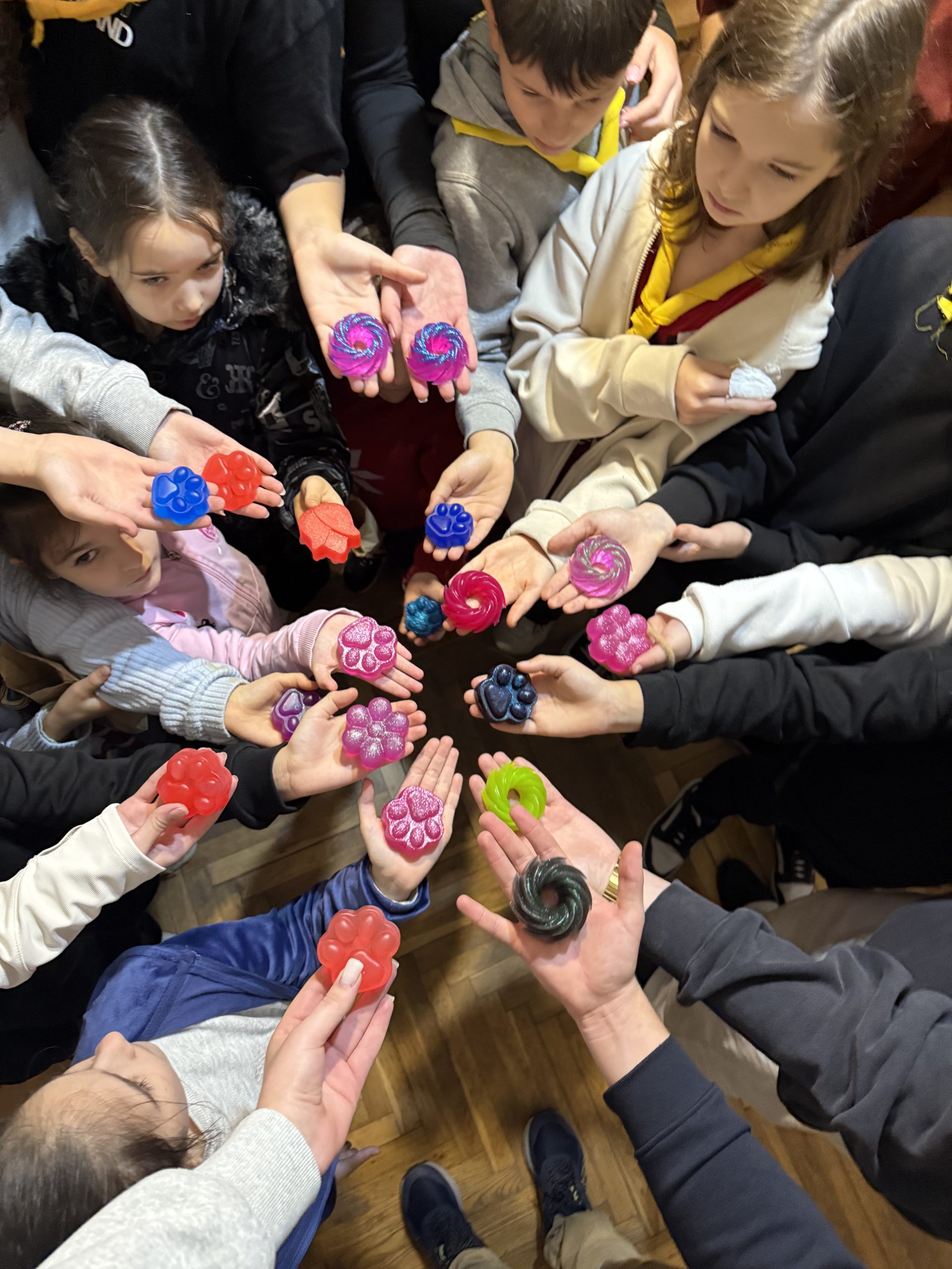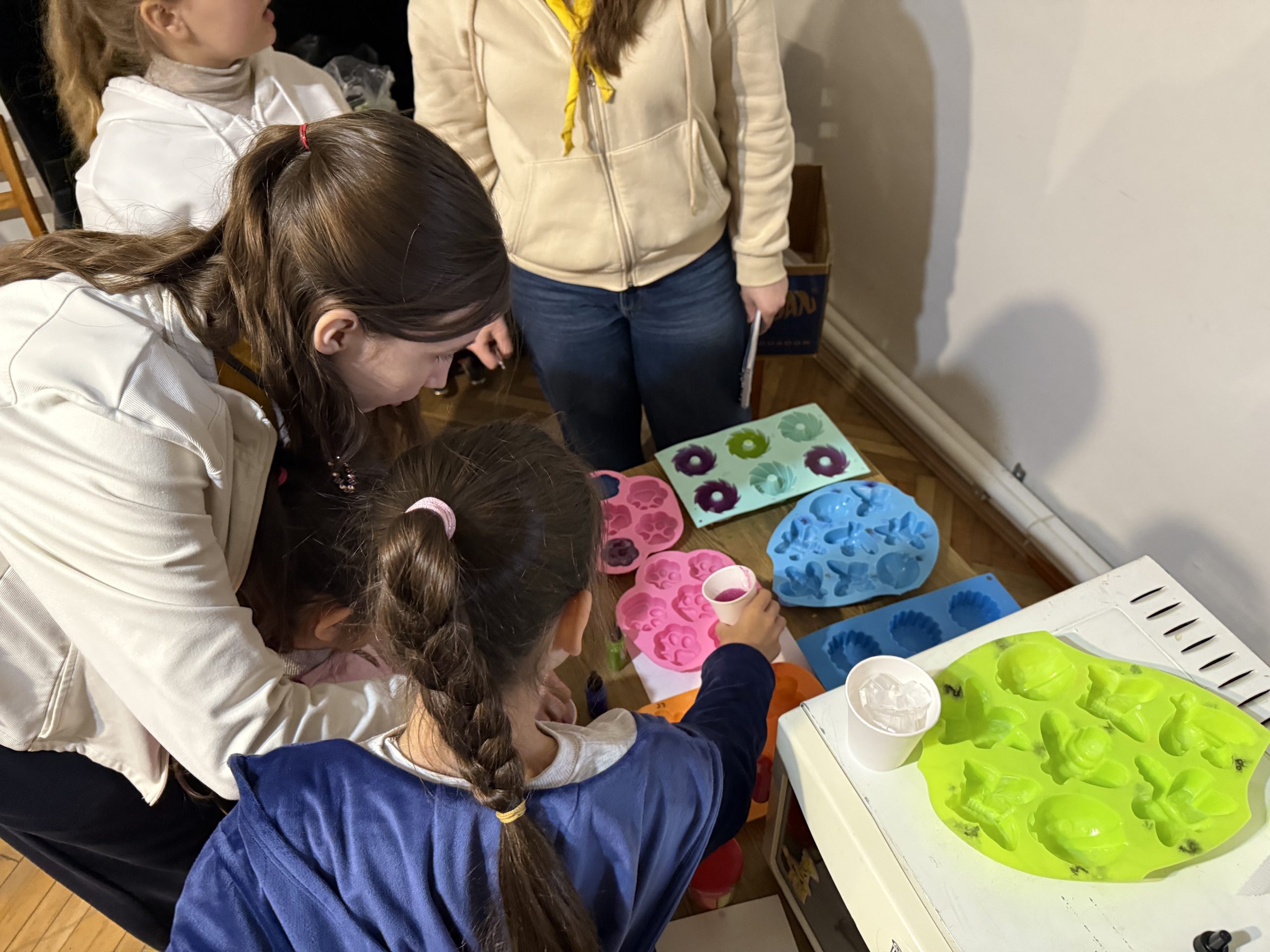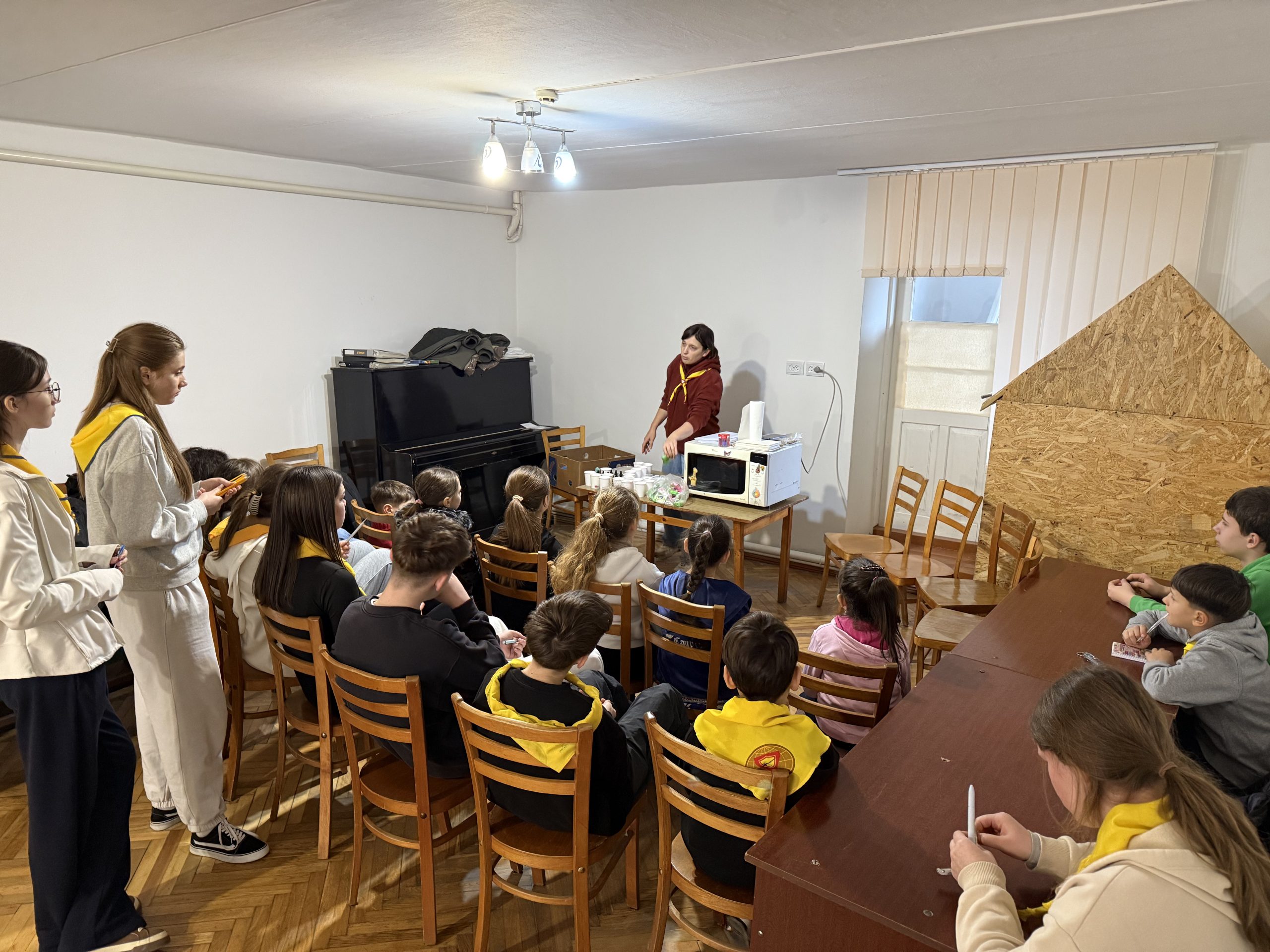Momentul special al zilei a fost desfășurarea unei specializări creative – sculptura în săpun. Fiecare copil a avut ocazia să-și creeze propriul săpun, alegând cu atenție culoarea și forma dorită. Ulterior, exploratorii au sculptat cu grijă un alt săpun, folosind cuțitul, transformând un obiect simplu într-o mică operă personală. Activitatea a stimulat creativitatea, răbdarea și îndemânarea fiecărui participant.