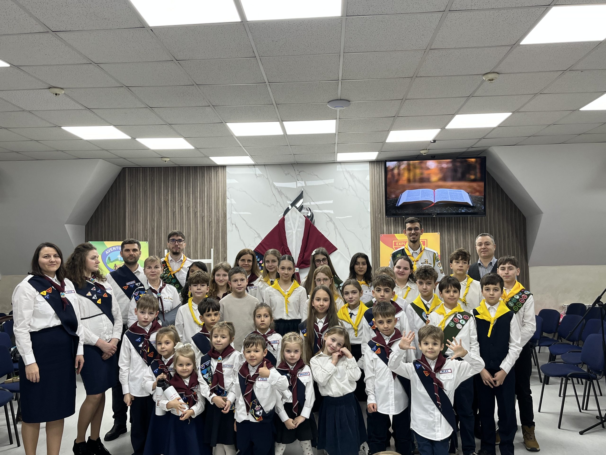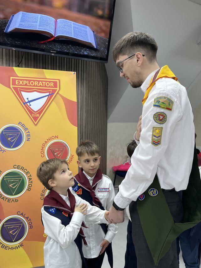 Programul din această sâmbătă a fost cu atât mai special cu cât, pe lângă investirea aventurierilor, au fost investiți și 2 exploratori, marcând continuitatea și dezvoltarea lucrării cu copiii și tinerii în biserică.