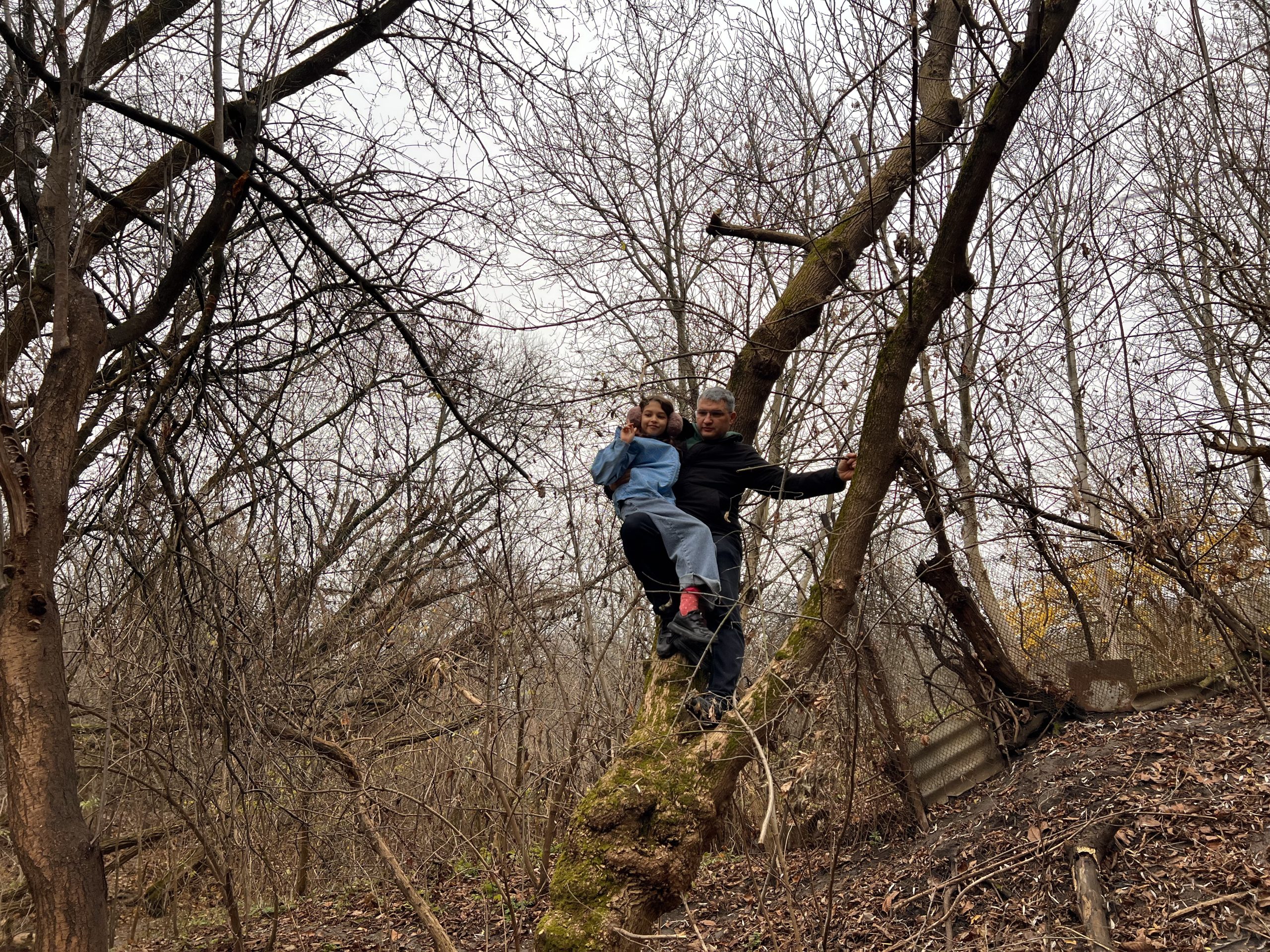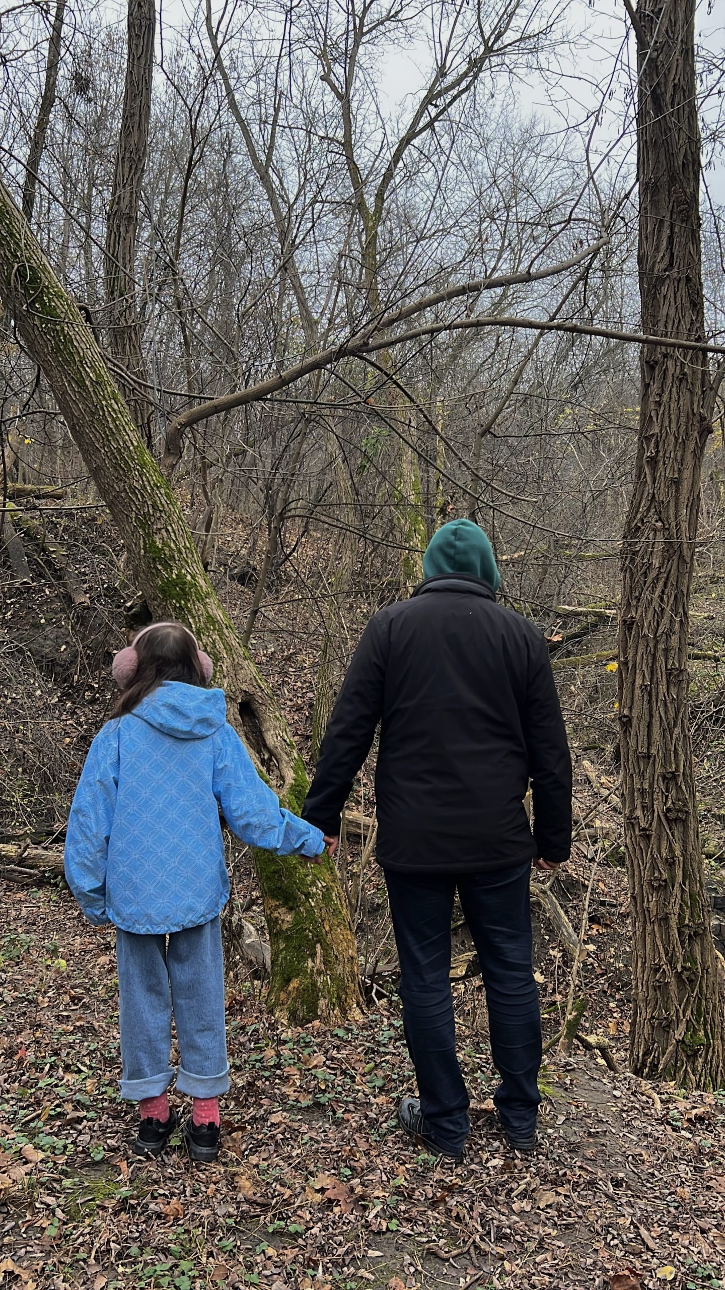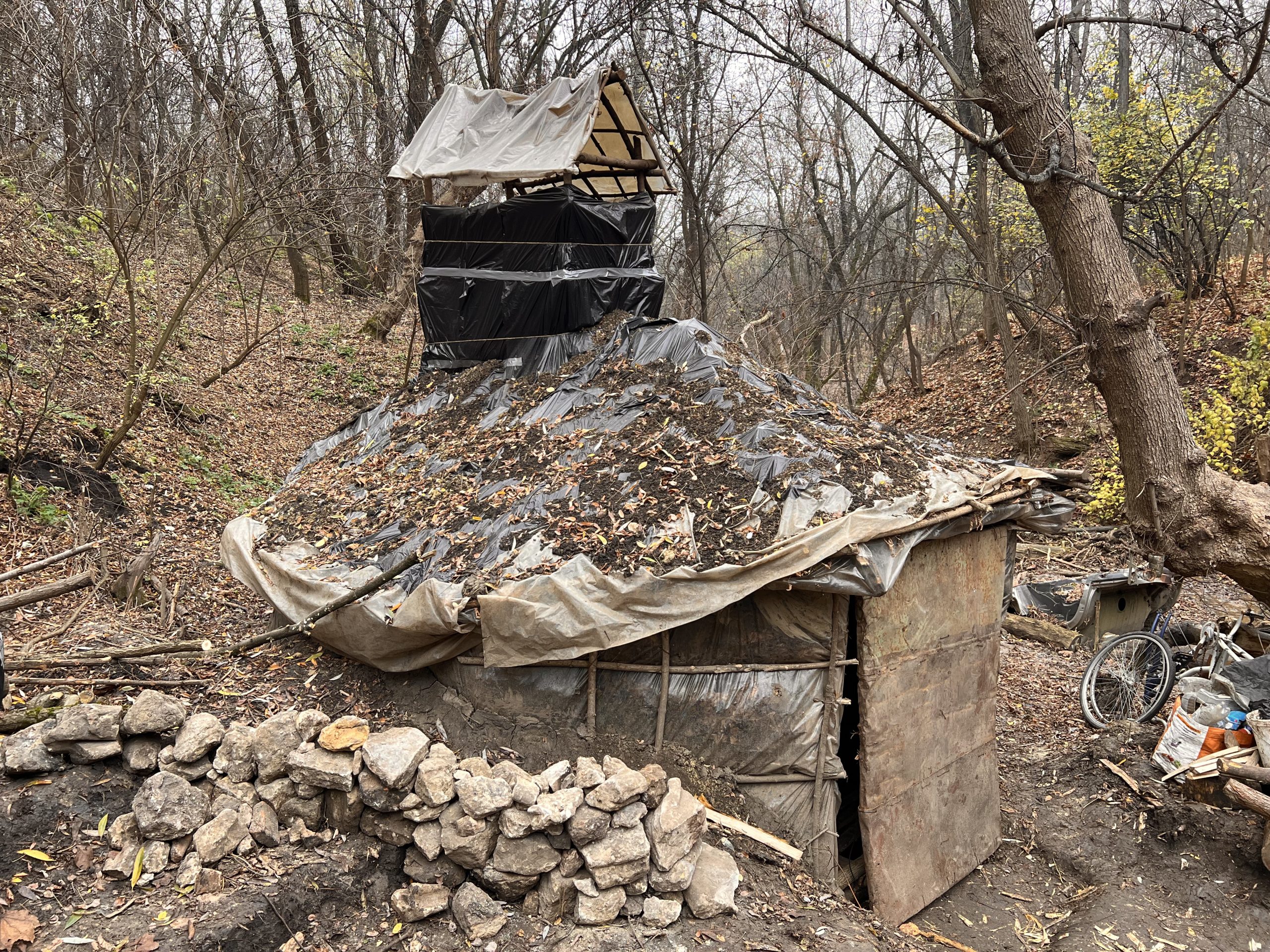 Natura a fost superbă: pe drum am admirat pădurea de toamnă. 🍁 În căutarea locului perfect – unul pe care nimeni altcineva nu l-ar putea găsi – am descoperit o căsuță improvizată, unde trăia cineva. ⛺️Totul era aranjat cu grijă: soba mare, rafturile, patul… Dar acasă nu era nimeni.
