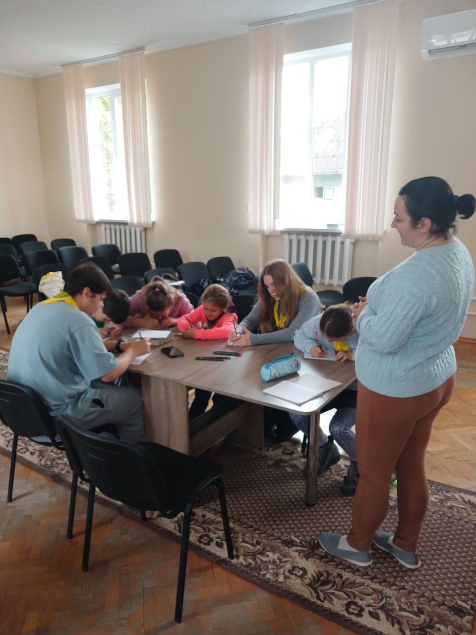 День прошёл интересно и насыщенно: были весёлые песни с движениями, захватывающие игры и изучение Нового Завета. Дети с радостью участвовали в обсуждениях и проявляли инициативу.